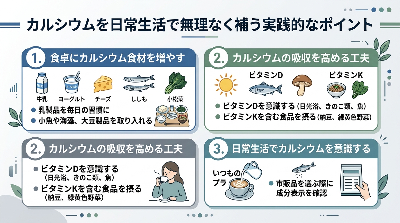 カルシウムを日常生活で無理なく補う実践的なポイント