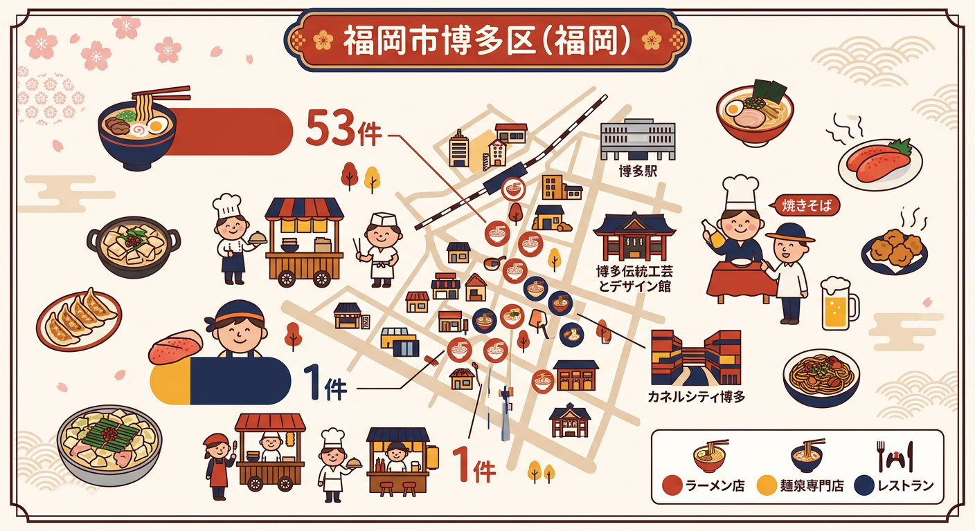 ¥1,000〜¥3,000 博多ラーメンの最前線を体感したい初訪問者や、博多駅周辺で効率よく名店を巡りたいラーメン好きの旅行者に最適な一店。